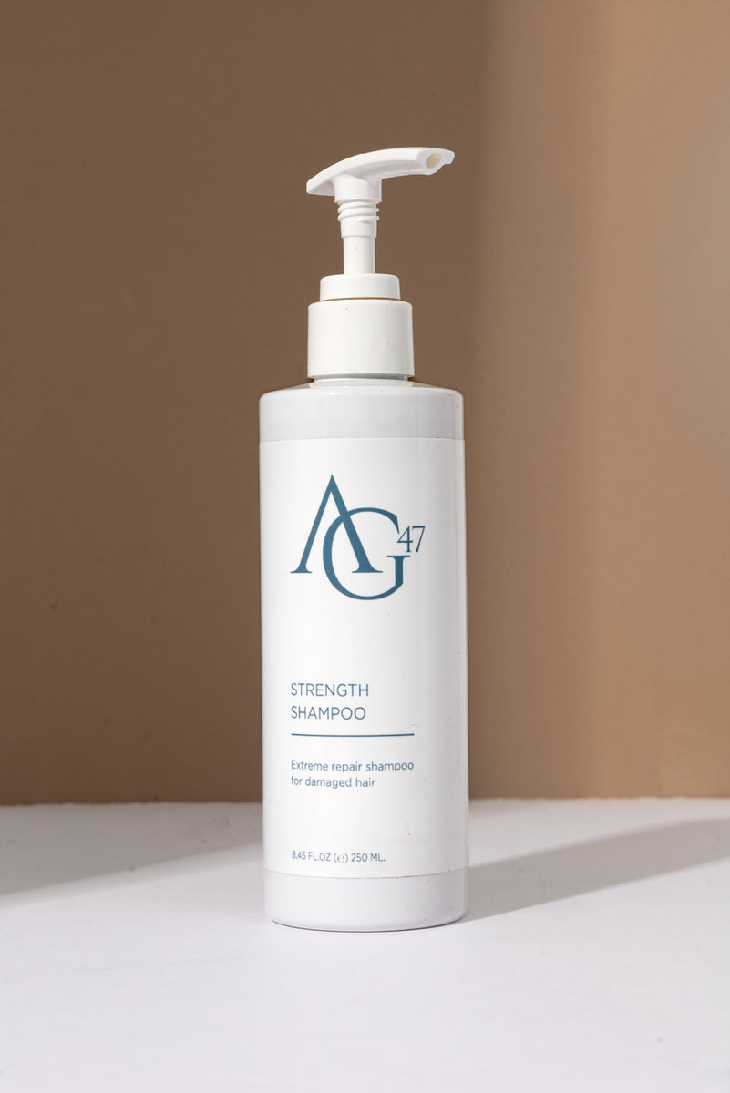 For Damaged Hair Our Strength Shampoo gently cleanses your hair while enhancing strength and elasticity. Our unique formula is tailored to protect hair follicles against breakage and split ends. Our Strength Shampoo is recommended for regular use on highly damaged, color treated or brittle hair. Nourishes and fortifies, Promotes hair growth, Hydrates and reduces frizz Essentials for gray hair to nourish and fortify fragile strands, reducing breakage and damage. Provides intense hydration and moisture, preventing dryness and brittleness. Regular use helps maintain the softness and manageability of gray hair, making it easier to style and reducing frizz.